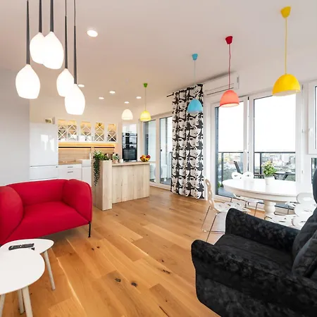 Апартаменти Apartament River Tower W Bydgoszczy Na14 Kondygnacji розташовані менш ніж за 2 км від центру Бідгоща, звідки відкривається вид на місто. Гості можуть користуватися Wi-Fi та приватною парковкою, яка знаходиться на території.